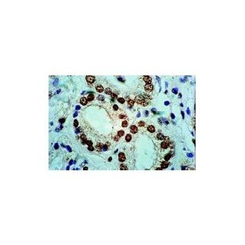 mouse monoclonal IgG2a; PAR4 Antibody (A-10) is an IgG2a κ mouse monoclonal PAR4 antibody (also designated PRKC, Apoptosis, WT1, regulator antibody, PAWR antibody, pro-apoptotic WT1 regulator antibody, prostate apoptosis response-4 antibody, PAR4 antibody, Par-4 antibody, or NF-kB pathway antibody) that detects the PAR4 protein of mouse, rat and human origin by WB, IP, IF, IHC(P) and ELISA. PAR4 Antibody (A-10) is available as both the non-conjugated anti-PAR4 antibody form, as well as multiple conjugated forms of anti-PAR4 antibody, including agarose, HRP, PE, FITC and multiple Alexa Fluor® conjugates. Normal tissues are characterized by a balance between cellular stasis, cell proliferation, cell differentiation and cell death. Aberrant regulation of any of these cell processes can result in cancer. Cell death during embryogenesis, tissue atrophy and normal tissue turnover is called apoptosis and is characterized by cytoplasmic and nuclear condensation, nuclear disorganization and fragmentation of genomic DNA into 180-200 base pair oligomers. Five ionomycin-inducible complementary cDNAs, designated PAR1, 2, 3, 4 and 5, have been isolated from the prostate cancer cell line AT-3. Nucleotide sequencing identified PAR1 as the rat homolog of MKP-1, PAR2 as the injury-inducible gene HB-EGF, and PAR3 as the serum-induced gene Cyr61. PAR4 and PAR5 sequences were not found to correspond to any previously described proteins. PAR4 (prostate apoptosis response 4) is specifically expressed by cells entering apoptosis and is not induced during growth factor stimulation, oxidative stress, necrosis or growth arrest. The PAR4 gene encodes a protein with a putative nuclear localization signal and carboxy terminal leucine zipper.