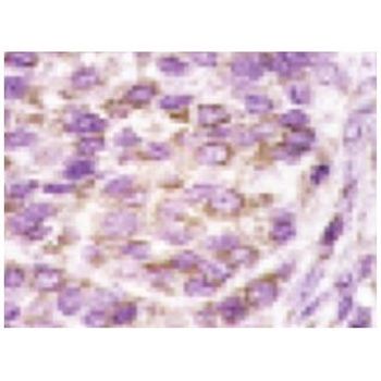 mouse monoclonal IgG1; Flk-1/KDR/VEGFR2 Antibody (A-3) is an IgG1 κ mouse monoclonal VEGFR2 antibody that detects VEGFR2 of mouse, rat and human origin by WB, IP, IF and IHC(P). Flk-1/KDR/VEGFR2 Antibody (A-3) is available as the non-conjugated anti-VEGFR2 antibody form, as well as multiple conjugated forms of anti-VEGFR2 antibody, including agarose, HRP, PE, FITC and multiple Alexa Fluor® conjugates. Three cell membrane receptor tyrosine kinases, Flt (also designated VEGF-R1) (1-3), Flk-1 (also designated VEGF-R2) (4-6) and Flt-4, putatively involved in the growth of endothelial cells, are characterized by the presence of seven immunoglobulin-like sequences in their extracellular domain. These receptors exhibit high degrees of sequence relatedness to each other as well as lesser degrees of relatedness to the class III receptors including CSF-1/Fms, PDGR, SLFR/Kit and Flt-3/Flk-2. Two members of this receptor class, Flt-1 and Flk-1, have been shown to represent high affinity receptors for vascular endothelial growth factors (VEGFs) (3,5). On the basis of structural similarity to Flt and Flk-1, it has been speculated that Flt-4 might represent a third receptor for either VEGF or a VEGF-related ligand.